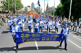 Des pratiquants de Falun Gong participent au Défilé de l'Australia Day.