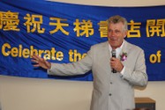 Mme Zhang Dai a fait le discours d'ouverture au nom de la librairie. Mme Dai est également une célèbre collectionneuse d'antiquités. John Deller, porte parole pour la New South Wales Falun Dafa Association, M. Wu vice Président de l'agence multiculturelle NSW et Steven Sim célèbre présentateur de TV, ont fait un discours de félicitation et coupé le ruban.