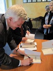 David Kilgour, le co-auteur du livre Prélèvement Sanglant, signe son livre à l'Université McGill.
