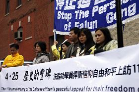 Le 25 avril 2010, les pratiquants de Falun Gong de Chicago ont tenu un rassemblement devant le consulat chinois, commémorant l'appel paisible d’il y a onze ans. Ils se sont remémorés l'appel et ils ont réclamé la fin de la persécution.