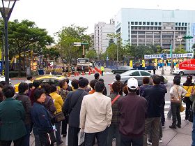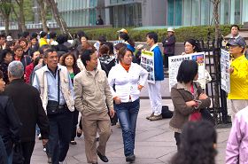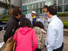 Il y avait plusieurs centaines de touristes en provenance du Continent à la Plaza de la Tour 101 à Taipei et ils pouvaient clairement entendre la conférence de presse de l’autre côté de la rue. En outre, les pratiquants se promenaient sur la place exhibant des affiches de clarification de la vérité. Quelques touristes ont pris de photos de cette scène alors que d’autres écoutaient paisiblement les discours prononcés par les pratiquants et les invités.