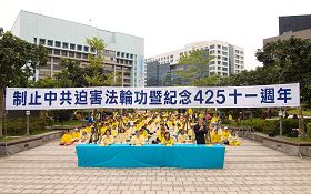 Dans l’après-midi du 24 avril, environ 800 pratiquants du Falun Gong se sont rassemblés devant la Tour 101 de Taipei pour leur conférence de presse : « Arrêter la persécution du Falun Gong et commémorer le onzième anniversaire de l’appel du 25 avril. » L’événement a été organisé par l’Association du Falun Dafa de Taiwan. De nombreux chercheurs ont assisté à la conférence pour exprimer leur soutien. Le rassemblement a également attiré de nombreux touristes de la Chine continentale.
