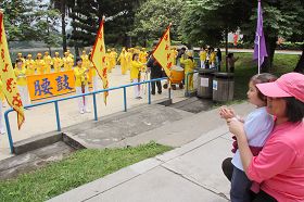 Les pratiquants qui ont présenté les exercices inclus des élèves de deuxième et troisième année et des personnes âgées dans les 70 et 80 ans. L’une d’entre eux, Mme Song, pratique le Falun Gong depuis 12 ans. Elle a dit :« Nous sommes venus ici, samedi, pour la présentation des exercices parce que nous avons personnellement bénéficié de la pratique du Falun Gong. Nous espérons dire à tous que le Falun Gong est vraiment bon pour l’esprit. »