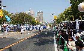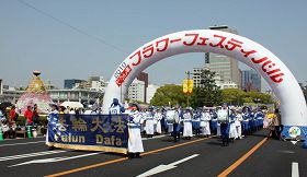 Les trois jours du Festival annuel des fleurs d’Hiroshima s’est ouvert le 3 mai 2010, par une journée printanière chaude et ensoleillée. L’Association du Falun Dafa du Japon y a participé sur invitation. C’est la neuvième année que le Falun Dafa participe à ce grand événement culturel.