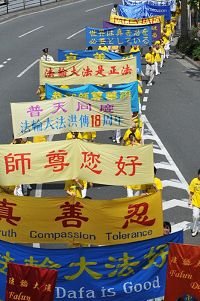 Le 9 mai 2010, les pratiquants de Falun Gong venant de partout au Japon ont organisé un défilé à Tokyo pour célébrer la 11e édition de la Journée mondiale de Falun Dafa.