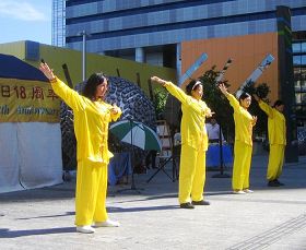 Les pratiquants ont présenté les exercices du Falun Gong, effectué la traditionnelle danse du lion, chanté et dansé et plié des fleurs de lotus en papier. Ils ont voulu partager avec le peuple australien les merveilles et la paix du Falun Dafa.