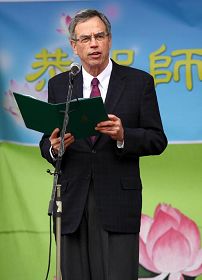 M. Chris Sellors, candidat membre du conseil du 22e District, a participé à la célébration de la Journée Mondiale du Falun Dafa. Il a dit dans son discours : « Je suis ici aujourd’hui pour les droits de l’homme ainsi que pour Authenticité – Compassion – Tolérance.»