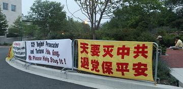 Dans la soirée du 25 avril 2010, les pratiquants de Washington et des environs se sont rassemblés devant l'ambassade chinoise et ont fait les exercices dans un grand groupe. Le rassemblement commémorait l'appel paisible du 25 avril où plus de 10.000 pratiquants de Falun Gong étaient allés au bureau d'appels du Conseil de l'État à Pékin il y a onze ans.