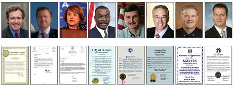 L’exécutif du comté d’Érié et maire de la ville de Niagara Falls a également envoyé des proclamations à Shen Yun Performing Arts et proclamé le 27 mai 2010 comme étant la « Journée Shen Yun ».