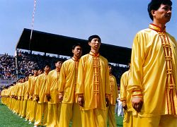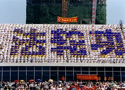 En août 1998, Shenyang, la capitale de la province du Liaoning, a tenu le Festival des sports asiatiques. Le 20 août, pendant l'ouverture du festival, les pratiquants de Falun Gong sont arrivés très tôt. Les pratiquants ont formé les caractères « Falun Gong » sur le site.