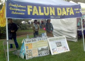 Le stand du Falun Dafa au Festival de la Terre, UC Davis |
