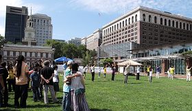 Le 31 juillet 2010, des pratiquants de Falun Gong de Philadelphie ont organisé un rassemblement devant la Liberty Bell, intitulé : « Désintégrer le Parti communiste chinois – Cesser la persécution du Falun Gong », pour dénoncer au public la persécution brutale et demander qu’elle cesse.
