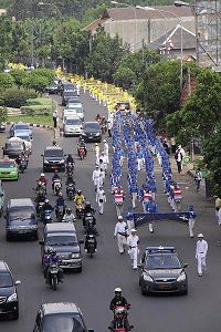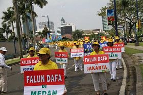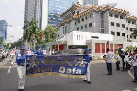 Le 14 août, les pratiquants de Falun Gong ont organisé un grand défilé à Jakarta, pour protester contre la persécution de 11 ans du Parti communiste chinois (PCC).