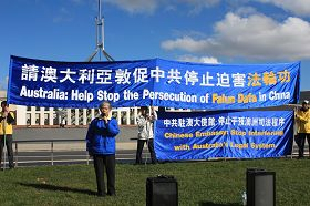 Mme Yu Changzhi, dans les 70 ans, est une ancienne ingénieure du ministère de l'espace en Chine. Le 20 juin 2010, elle s'est tenue devant le Palais du Congrès en Australie et a réclamé un terme à la persécution du Falun Gong par le PCC :