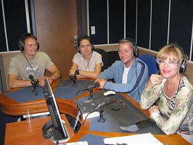 Les pratiquants bulgares et le présentateur de la station (à droite) pendant la radiodiffusion en direct le 26 juillet 2010.