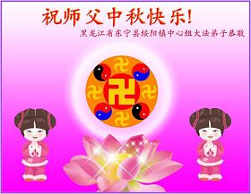 Des pratiquants du Falun Dafa de la ville de Suiyang, canton de Dongning, province du Heilongjiang souhaitent respectueusement au vénérable Maître leurs meilleurs voeux pour la fête de la mi-automne !