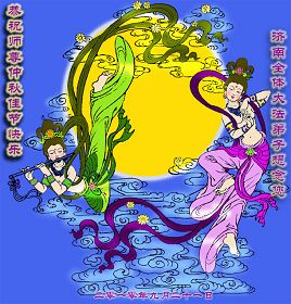 Des pratiquants du Falun Dafa de la ville de Jimo, province du Shangdong souhaitent respectueusement au vénérable Maître leurs meilleurs voeux pour la fête de la mi-automne !