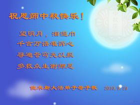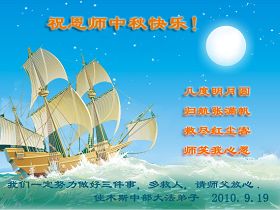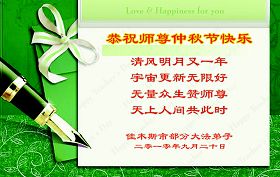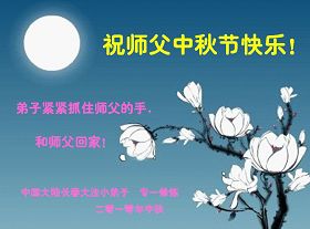 Les pratiquants de Falun Dafa qui sont illégalement détenus dans la ville de Guangzhou, souhaitent respectueusement au vénérable Maître une heureuse fête de la mi-automne !