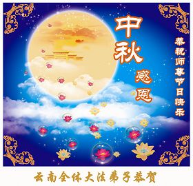 Les pratiquants de Falun Dafa de la provice du Yunnan souhaitent respectueusement au vénérable Maître une heureuse fête de la mi-automne !
