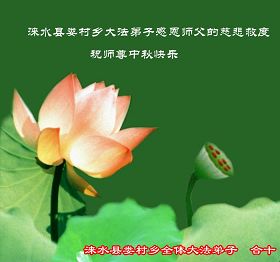 Les pratiquants de Falun Dafa du canton de Xihua, ville de Zhoukou, province du Henan, souhaitent respectueusement au vénérable Maître une heureuse fête de la mi-automne !