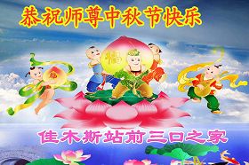 Trois pratiquants de Jinan, province du Shandong, souhaitent respectueusement au vénérable Maître une heureuse fête de la mi-automne !