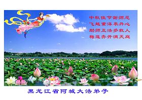 Les pratiquants de Falun Dafa de Acheng, province du Heilongjiang, souhaitent respectueusement au vénérable Maître une heureuse fête de la mi-automne !