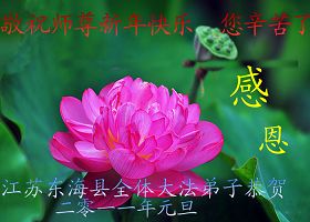 Les pratiquants de Falun Dafa de Guanyun, Jiangsu souhaitent respectueusement au vénérable Maître une Bonne et Heureuse Année !