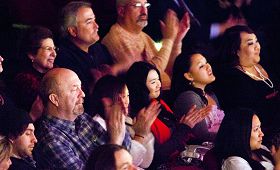 Les spectateurs d'Omaha regardent joyeusement le spectacle de Shen Yun.