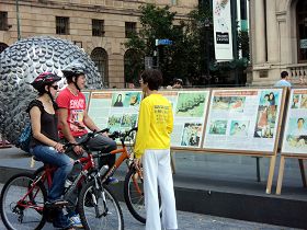 Des pratiquants de Falun Gong du Queensland se sont rassemblés le 1er octobre 2011 pour dénoncer la persécution du Falun Gong par le régime communiste chinois. Ils ont mis en place des affiches et des banderoles à la Place Brisbane pour attirer l’attention des passants. De nombreuses personnes ont appuyé et encouragé les efforts des pratiquants pour mettre fin à la persécution.