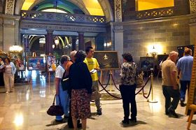 L’entrée de l’exposition artistique: La rotonde du plancher principal du Capitole de l’État du Missouri