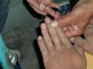 Simulation de torture: piquer le bout des doigts avec une aiguille