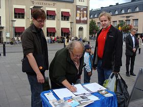 passant signent la pétition pour dénoncer la persécution