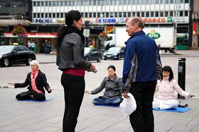 Le 17 septembre 2011, par une fraîche journée d'automne, des pratiquants de Falun Gong ont mis en place une table sur la place en face de la gare centrale d'Helsinki. Les pratiquants ont aussi mis en place des affiches et des banderoles avec des informations sur le Falun Dafa. Les pratiquants ont organisé une présentation des exercices, en passant la musique lente et douce des exercices. Le cadre était fort contrastant avec le restant de la place bruyante et animée. Beaucoup de gens se sont arrêtés pour regarder les affiches et quelques-uns ont signé la pétition pour protester contre la persécution du Falun Gong en Chine.