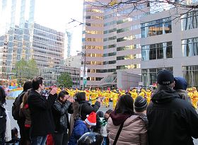 La prestation des pratiquants a été chaudement accueillie par les spectateurs. Deux hommes âgés on dit qu'ils sont venus au défié pour voir le cortège du groupe du Falun Gong.