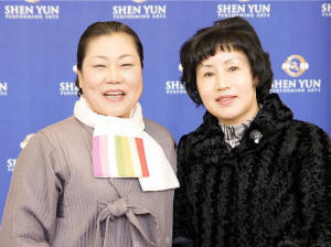 Mme Cho Do Hyeon (à droite) une artiste et membre de l'orchestre Pop, a fait tout le chemin de Daejeon à Daeu pour voir Shen Yun avec un groupe d'amis et des collègues artistes.