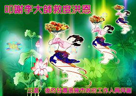 Un groupe de 60 personnes a envoyé ses voeux à Maître Li Hongzhi. Ils ont eu des malheurs qui ont disparu après avoir récité «Falun Gong est bon.» Ils ne pouvaient pas trouver de mots pour exprimer leur gratitude, ils se sont inclinés en direction des États-Unis où Maître Li réside. Dans leurs souhaits en groupe, ils ont promis de réciter «Falun Gong est bon» et «Authenticité – Compasion – Tolérance est bon» tous les jours.
