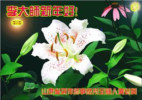 Un homme de Zhangjiakou, province du Hebei, a souhaité à Maître Li un heureux Nouvel an. Il a écrit : «Les pratiquants de Falun Gong m'ont expliqué la vérité sur le Falun Gong. Dans le passé, j'ai fait beaucoup d'erreurs et fait des mauvaises choses au Falun Gong. Maître Li et les pratiquants de Falun Gong m'ont sorti des profondeurs du péché et du désespoir et m'ont donné une chance de repartir à neuf. Comme le Nouvel an approche, je tiens à avouer mes regrets et souhaiter à Maître Li un heureux Nouvel an!»