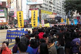 (Minghui.org)Le sponsor et l'organisateur des spectacles de Shen Yun à Hong Kong ont récemment intenté un procès contre le gouvernement de Hong Kong pour ses interférences au spectacle. Le tribunal a organisé une audition le 24 janvier 2011. Avant l'audition, l'organisateur du spectacle a organisé un défilé et un rassemblement, demandant appui et aide pour que cessent les interférences du Parti communiste chinois (PCC). Plusieurs invités ont parlé au rassemblement. Ils espèrent que le tribunal décidera avec impartialité de sorte que Shen Yun puisse jouer à Hong Kong.