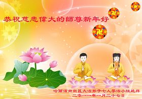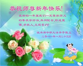 Quand arrive le Nouvel An chinois, des pratiquants de Falun Dafa du monde entier envoient des voeux du Nouvel An au Site Internet Minghui/Clartés et Sagesse. Avec les voeux il y a un grand nombre de cartes de souhait fait maison, des poèmes et des photographies envoyées pour souhaiter respectueusement à notre bienveillant et généreux Maître Li Hongzhi un Bon et Heureux Nouvel An Chinois. Voici seulement une portion des cartes de souhait que nous avons recueillies des pratiquants de Falun Dafa en Chine.