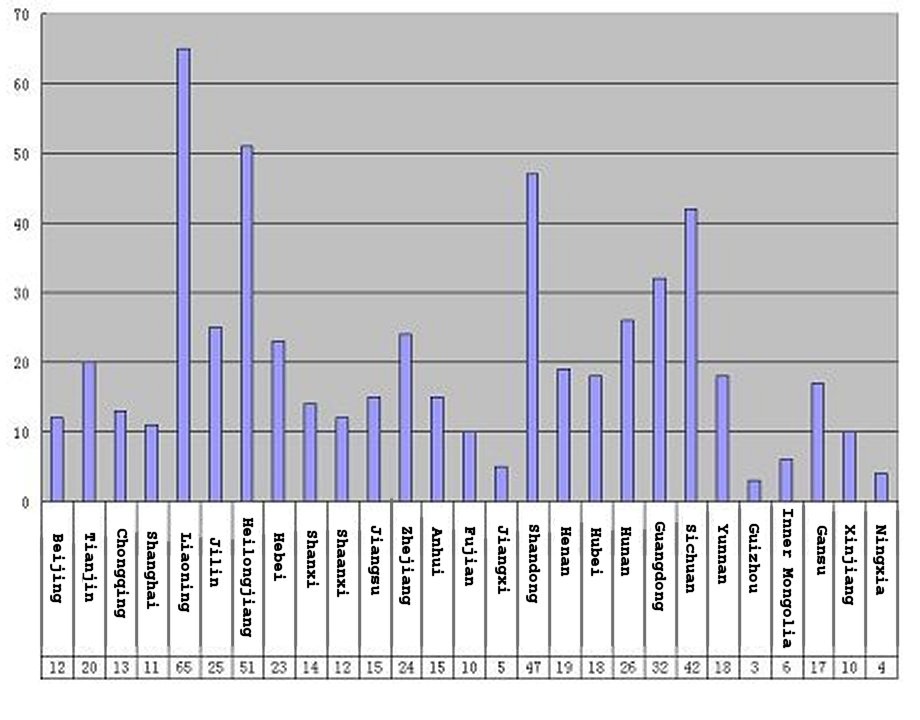 Répartition de l'emprisonnement des pratiquants du Falun Gong dans chaque province du mois de janvier 2010 à janvier 2011