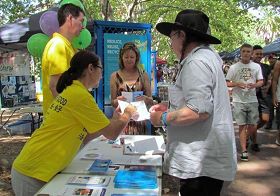 Un visiteur recherche plus d'information sur le Falun Gong