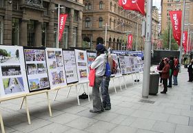 Depuis que le PCC a lancé sa persécution à l'échelle nationale le 20 juillet 1999, des centaines de milliers de pratiquants du Falun Gong ont été jetés en prison ou dans des camps de travaux forcés. Le PCC prélève brutalement les organes des pratiquants encore vivants. Afin de dénoncer la persécution, les pratiquants du Falun Gong de Sydney ont mis en place des affiches aux sites touristiques, devant l'ambassade chinoise et dans les rues achalandées. Ils ont distribué des brochures, mis en place des affiches et des tables d'information, des veillées à la chandelle, des expositions anti-torture et des conférences de presse. Les gouvernements, les médias et le grand public a appris la véritable histoire des pratiquants du Falun Gong. Ils ont signé en faveur du Falun Gong et dénoncé la persécution.