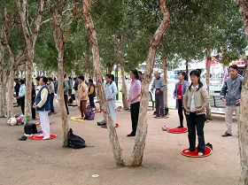 Les pratiquants du Falun Gong présentent les exercices du Falun Gong.