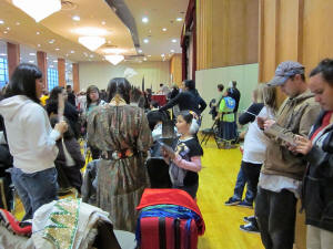 La salle de bal Union du campus de l'université de l'Utah est devenue sereine alors que la musique du Falun Dafa jouait avant le début de la grande cérémonie le 9 avril. Comme nous parlions de la beauté et des bénéfices de Dafa et parlions de la persécution en cours en Chine, nous avons découvert que peu des gens ici ont entendu parler du Falun Dafa. Mais de nombreuses personnes étaient intéressées à apprendre, touchées par les histoires de persécution des pratiquants en Chine.