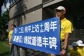 Les pratiquants de Falun Gong à Houston ont commémoré le douzième anniversaire de l'appel du 25 avril devant le consulat chinois