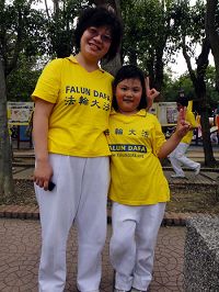 Mme Li Xiangchen est une enseignante de chimie de lycée à Taoyuan. Elle était heureuse de partager comment sa fille, d’une école primaire, a amélioré son xinxing après l'étude de Zhuan Falun. Après la compréhension de la signification de l’Authenticité-Bienveillance-Tolérance, sa fille le met en pratique dans sa vie quotidienne et rappelle souvent sa mère et son jeune frère quand ils ne se conduisent pas strictement comme des pratiquants. Le mari de Mme Lin n’est pas un pratiquant, mais il a accompagné son épouse, en tenant leur plus jeune fils dans ses bras, pour montrer son appui.