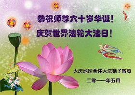Les pratiquants de Falun Dafa de Daqing souhaitent au Vénérable Maître un bon anniversaire !