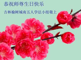 Les pratiquants de Falun Dafa d’un groupe d’étude de cinq personnes de Yushu, Jilin, souhaitent au Vénérable Maître un bon anniversaire !