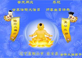 Les pratiquants de Falun Dafa de Anshan, Liaoning, souhaitent au Vénérable Maître un bon anniversaire !