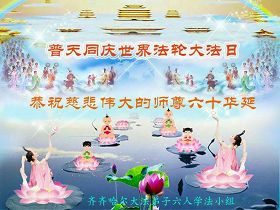 Six pratiquants de Falun Dafa de Qiqihar, Heilongjiang, souhaitent au Vénérable Maître un bon anniversaire !
